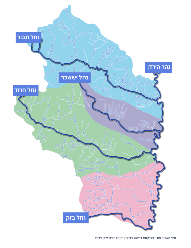 באגן ההיקוות של הירדן הדרומי קיימים 4 נחלים מרכזיים: תבור, יששכר, חרוד, הירדן הדרומי, ויובליהם.